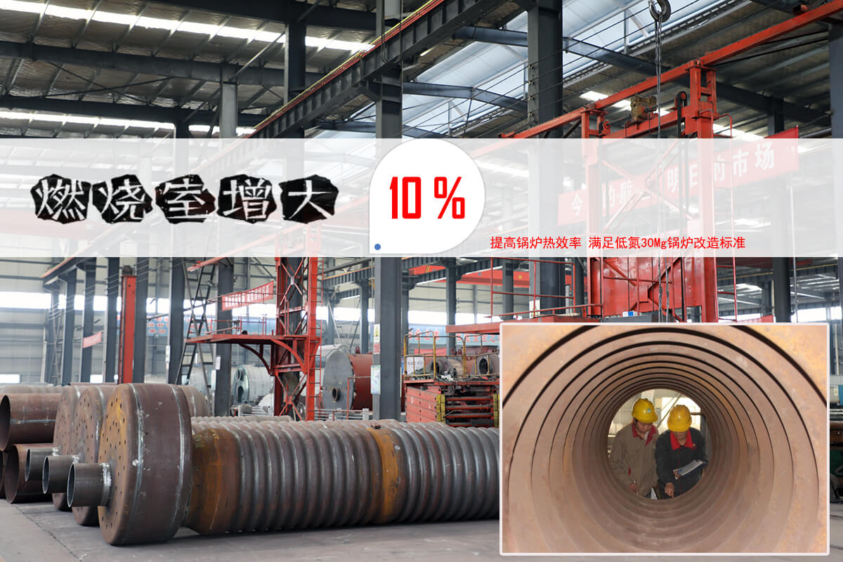 燃燒室大容積、波紋爐膽結(jié)構(gòu)設(shè)計(jì),配置雙重節(jié)能裝置,燃料燃燒充分徹底,排煙溫度低,熱效率可提高5-10%;